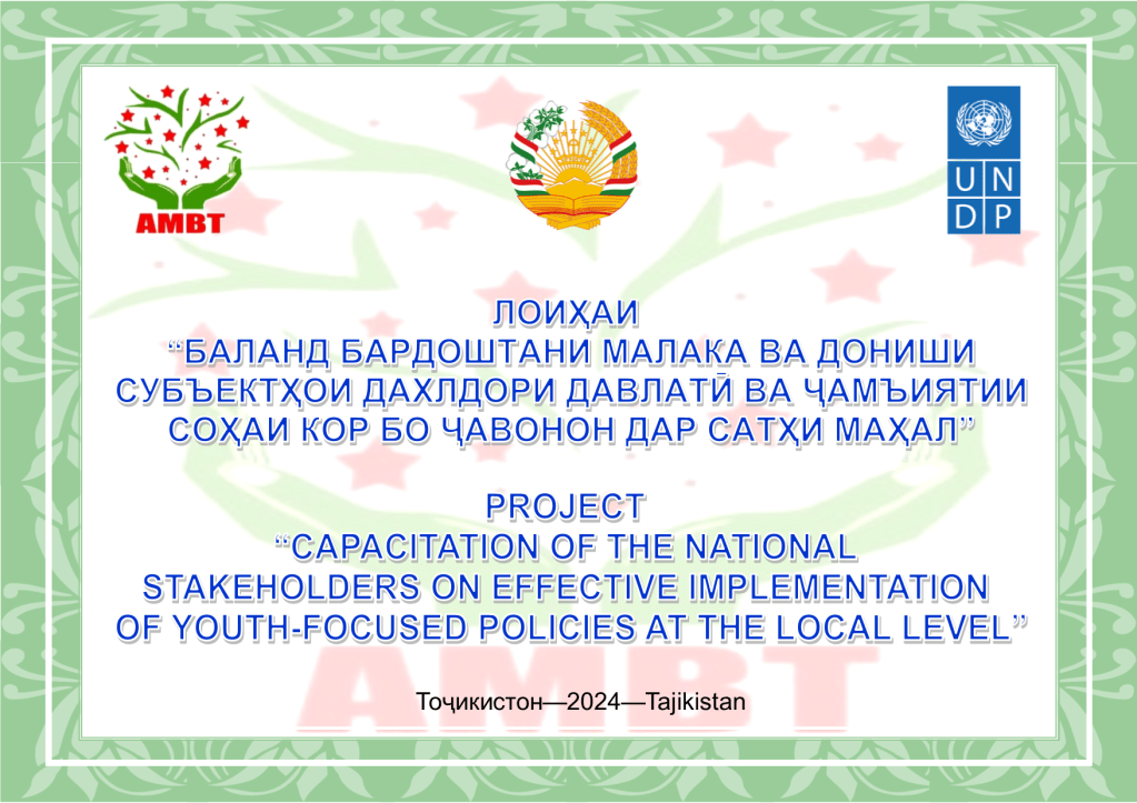 Оғози лоиҳаи «Баланд бардоштани малака ва дониши субъектҳои дахлдори давлатӣ ва ҷамъиятии кор бо ҷавонон», ки дар шаҳру ноҳияҳои Душанбе, Исфара, ноҳияҳои Б.Ғафуров, Рушон, Лахш, Фархор, Панҷ ва Носири Хусрав татбиқ мегардад.